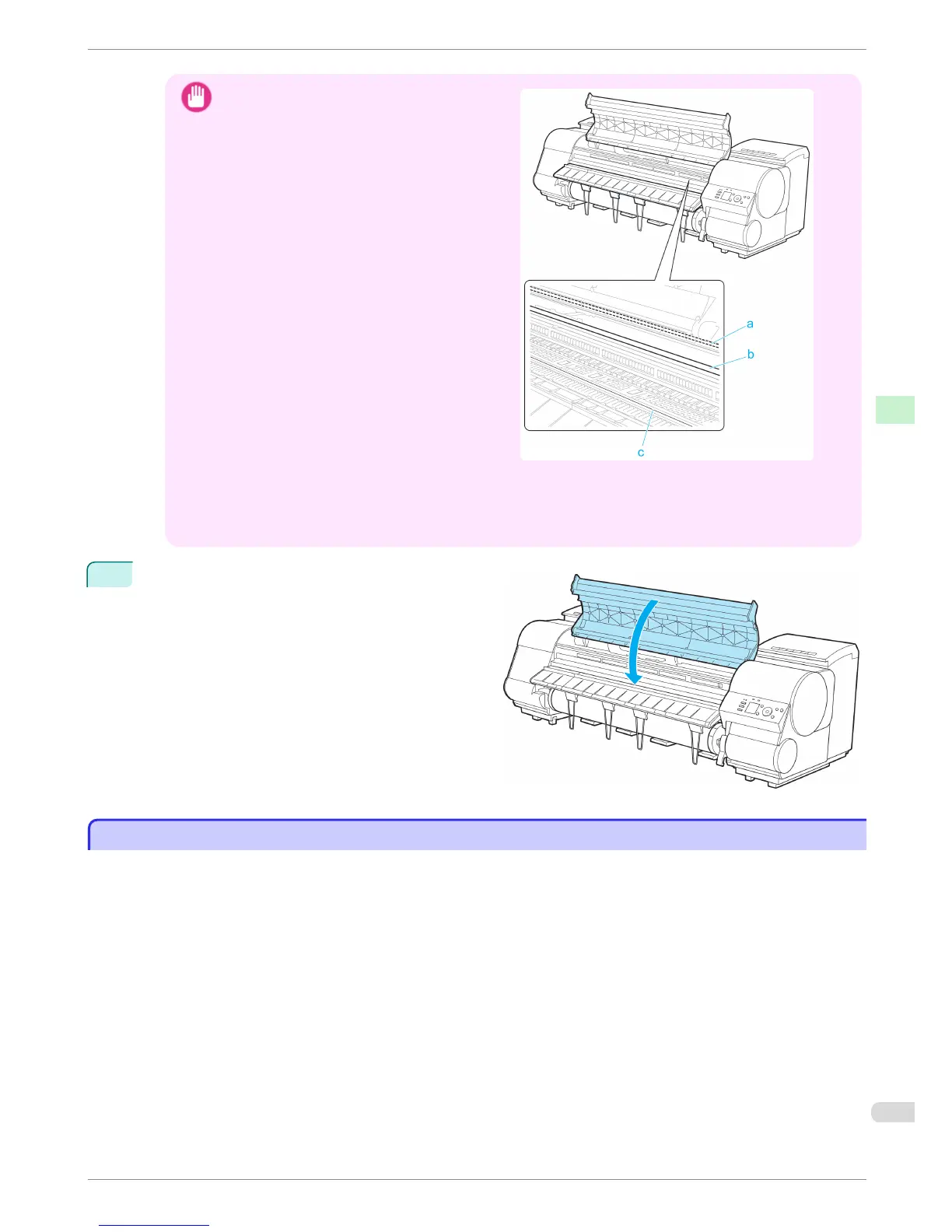 • Do not touch the clear sheet on the side of the Top Cover Roller. This may damage the roller.