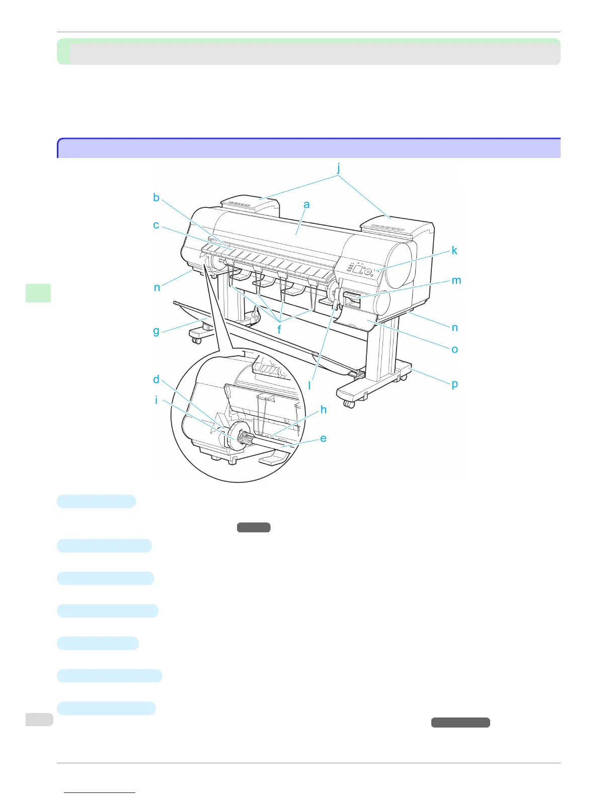 Guides printed documents as they are ejected. Raise the guide when loading a roll.