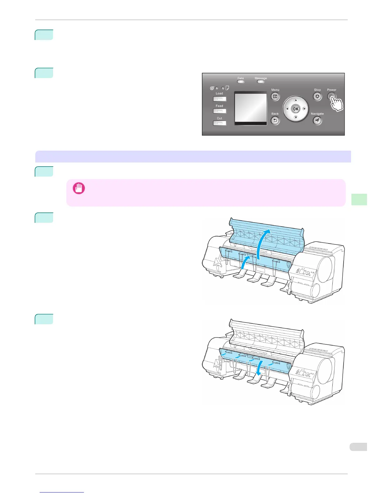 it in that state. If you accidentally unplug the printer, plug it in again, reinstall the ink tanks, and follow this