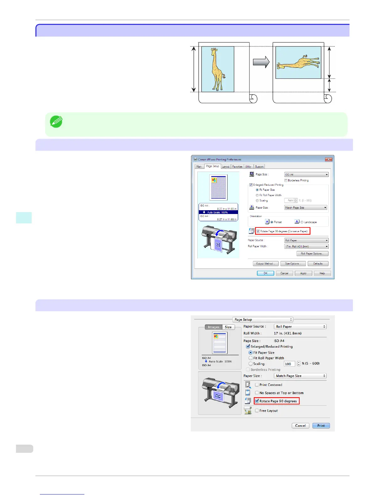 • If the page would exceed the roll paper width after rotation, you can use this function with Scale to fit Roll Paper Width to