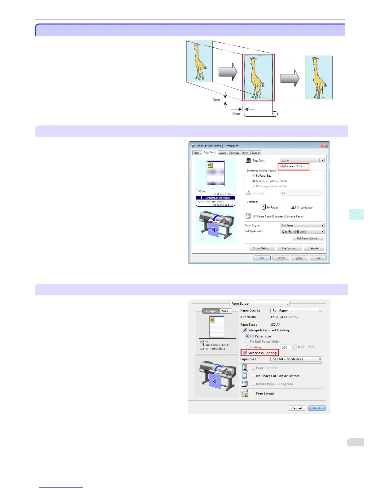 2. Select the Borderless Printing check box to dis-