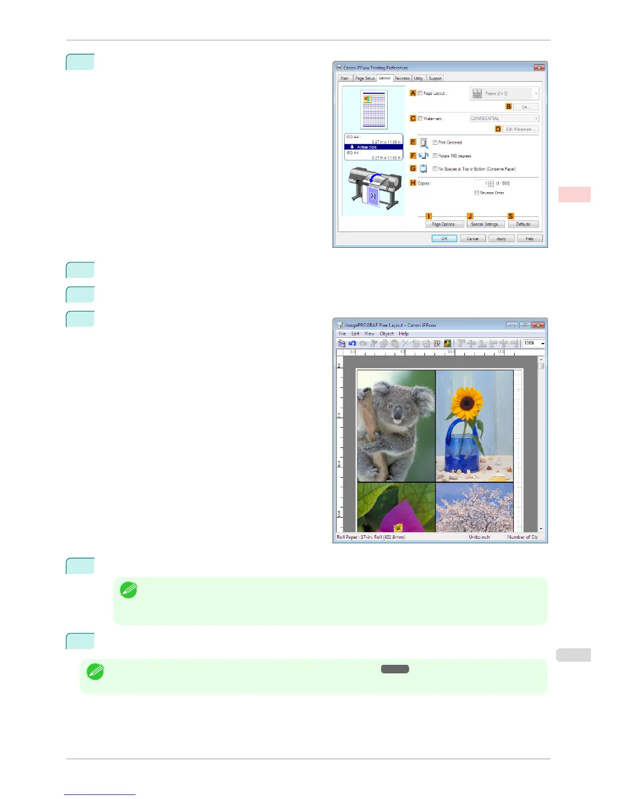 • For details on imagePROGRAF Free Layout functions, see "Free Layout." ➔ P.192