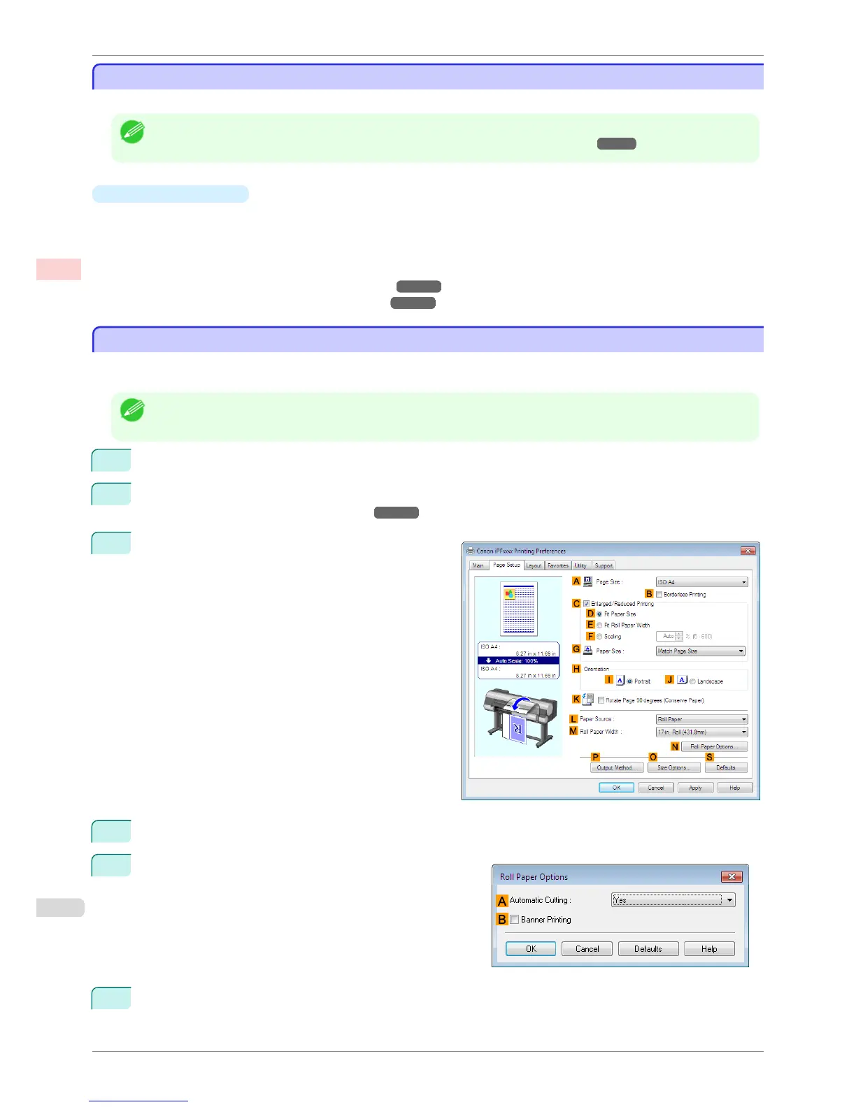 This topic describes how to cut roll paper automatically after printing (using the auto cut function), as well as how to