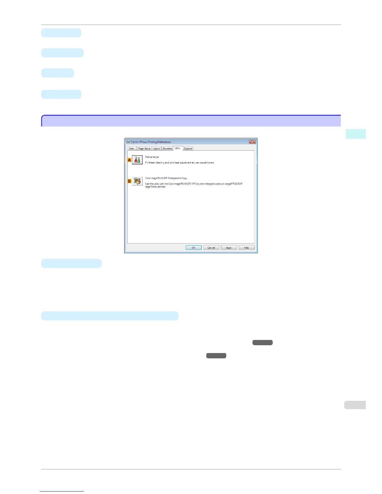 Click to start the imagePROGRAF Status Monitor, which offers the following maintenance for the printer.