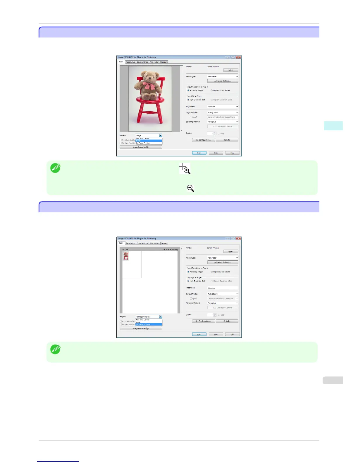• When the cursor appears as a small magnifying glass while there is an Image in the Preview area, the Print