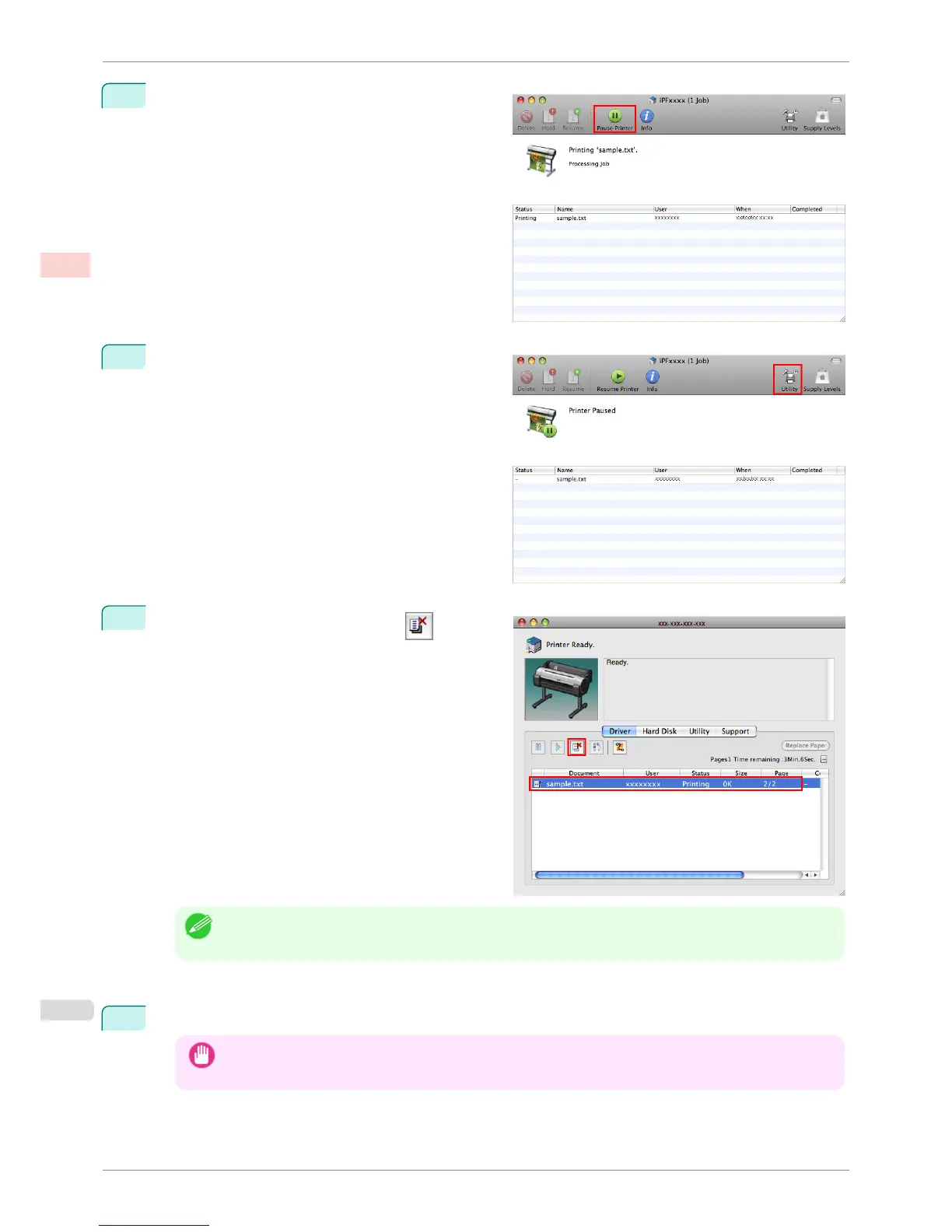 • Always follow these steps if you cancel print jobs from imagePROGRAF Printmonitor. If you do not restart job