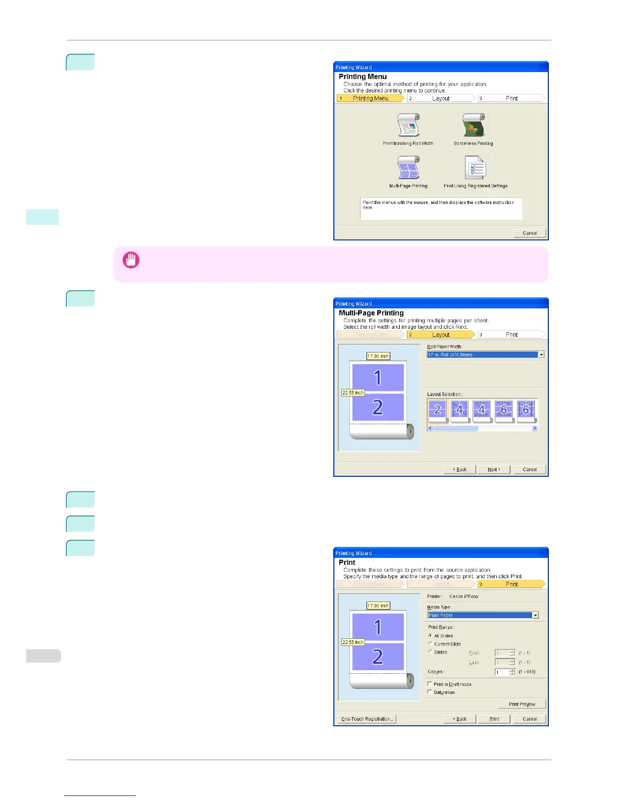 • If you want to change the display to another file or application while the Printing Wizard is open, close the