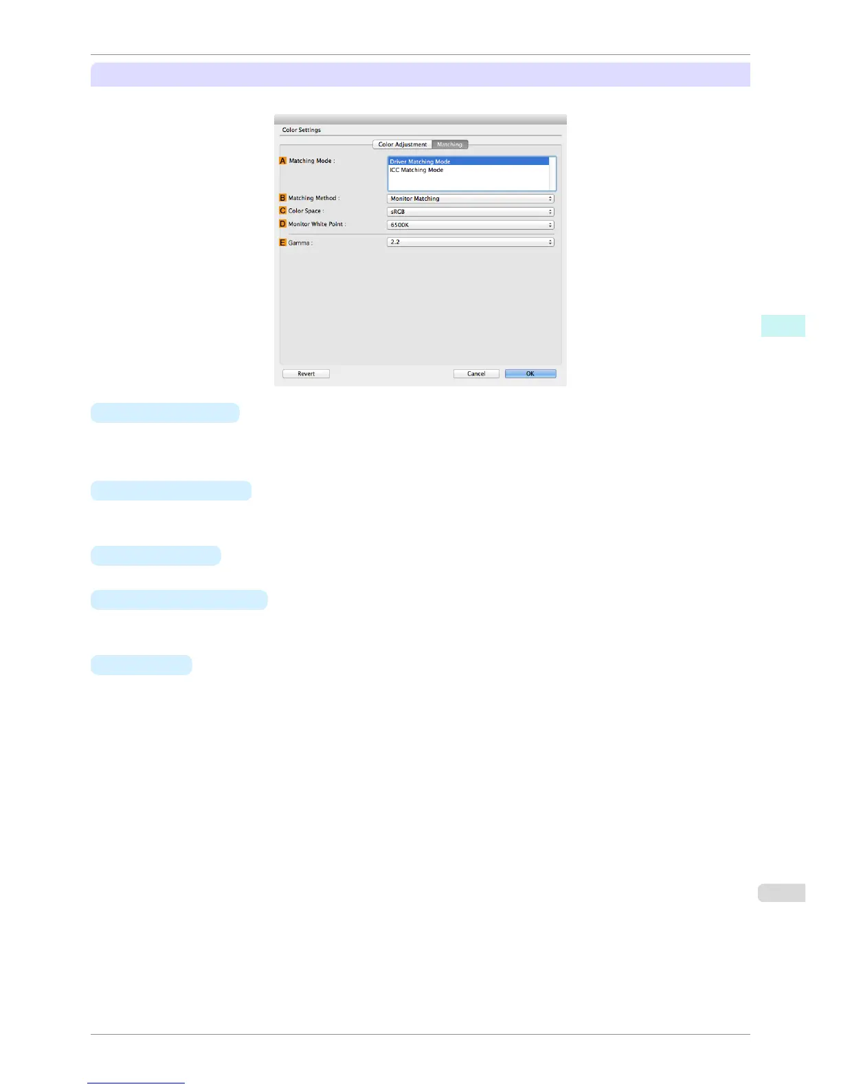 Select the color matching method that suits the document to be printed. Various B Matching Method options