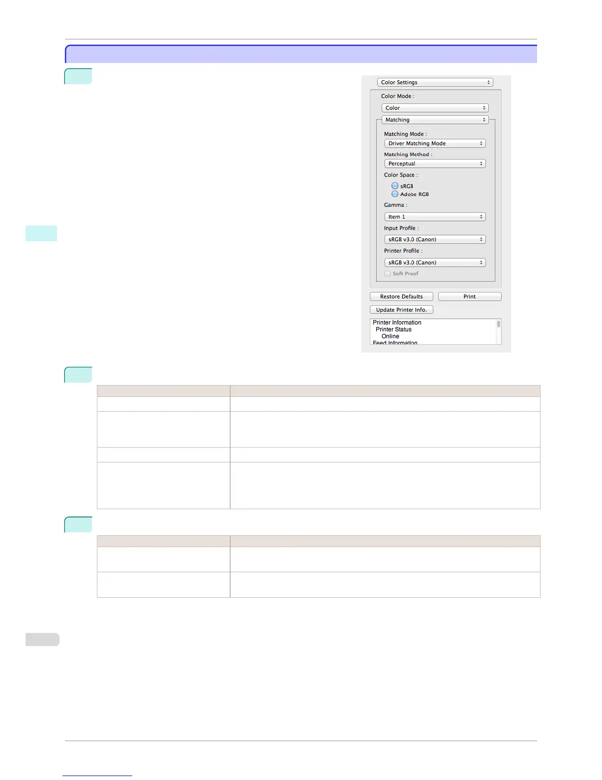 Adobe RGB Uses wide color space. Use this setting to print images created with Adobe RGB color
