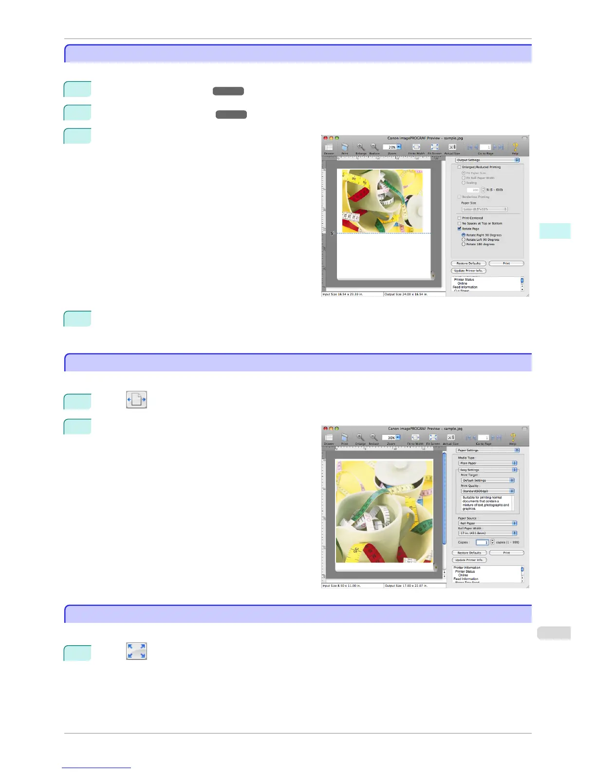 On the Output Settings Panel ➔ P.344 , click the Rotate Page check box on.