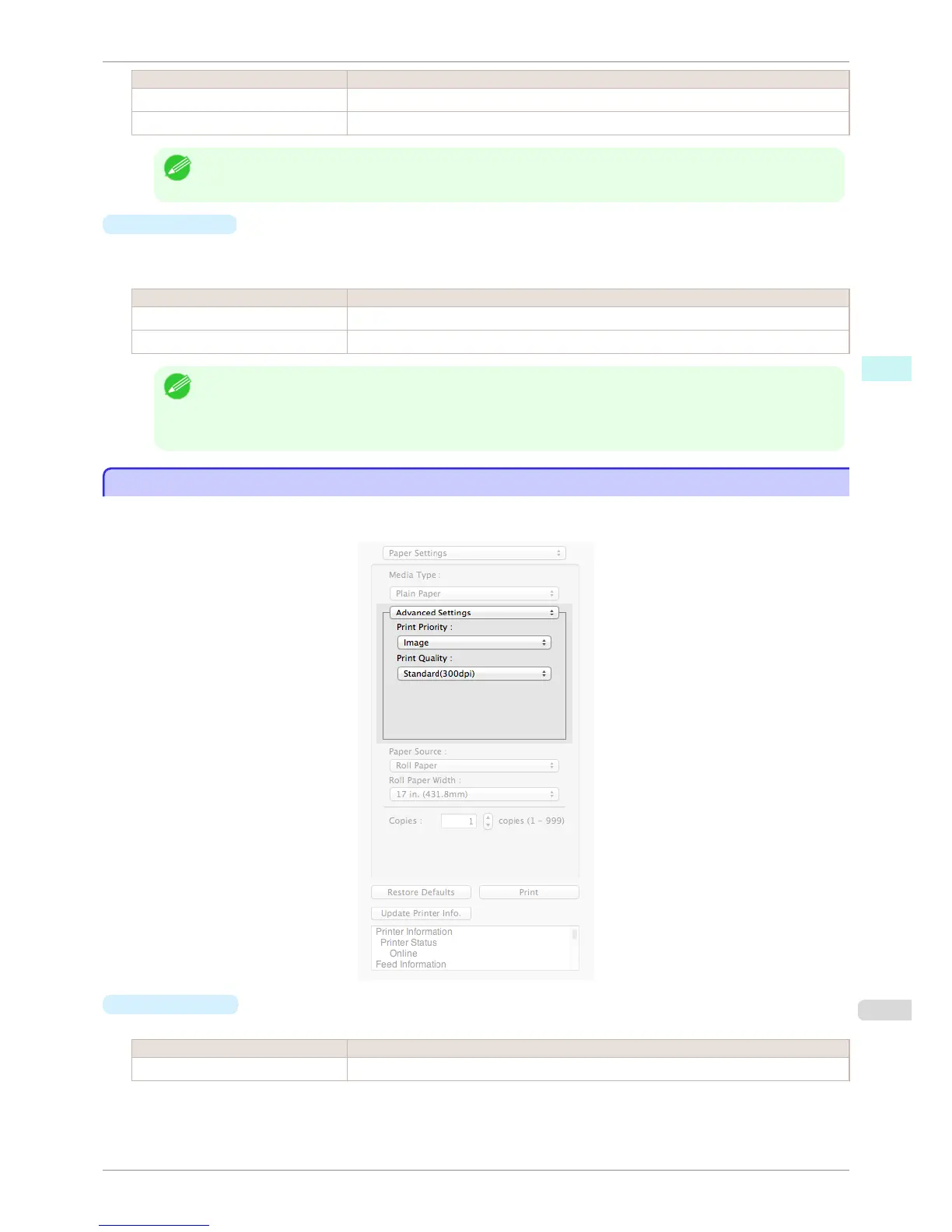 • The availability of settings is determined by the media type and print priority selections.