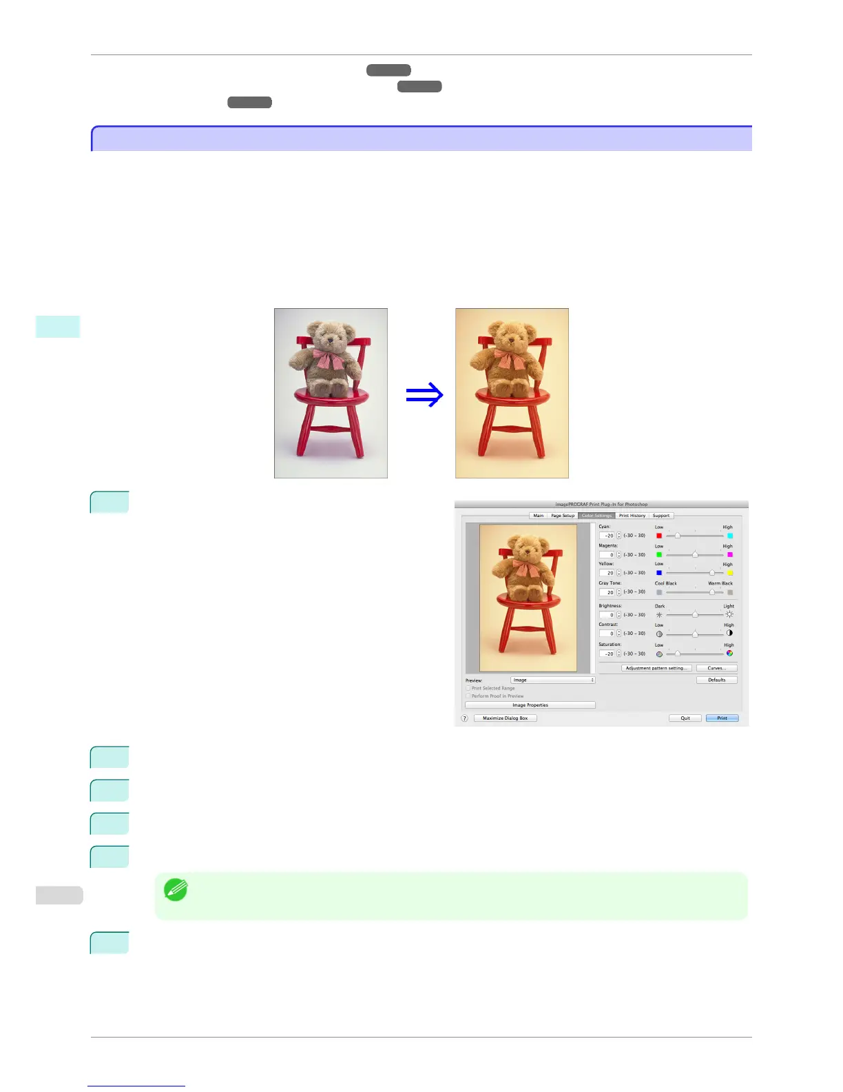 The following explanation is on the procedures for adjusting example image below.