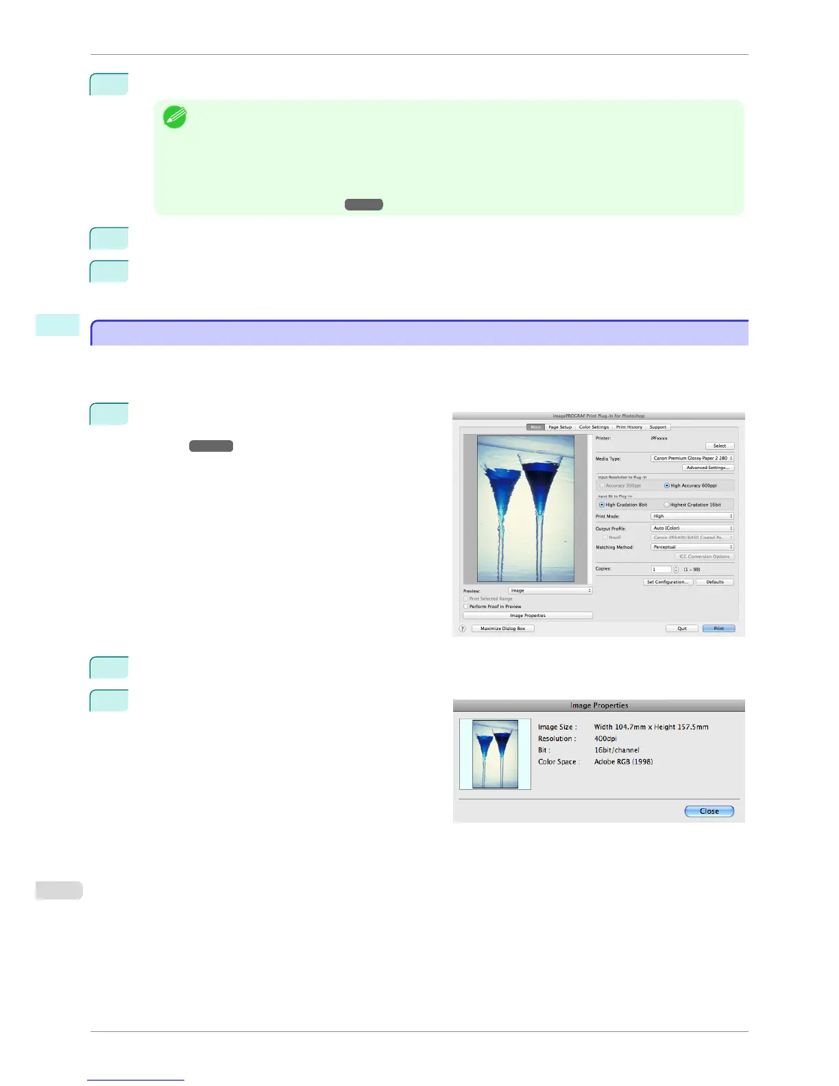 • The details of Output Profile you have set is saved even when you close the Print Plug-In, but when the speci-