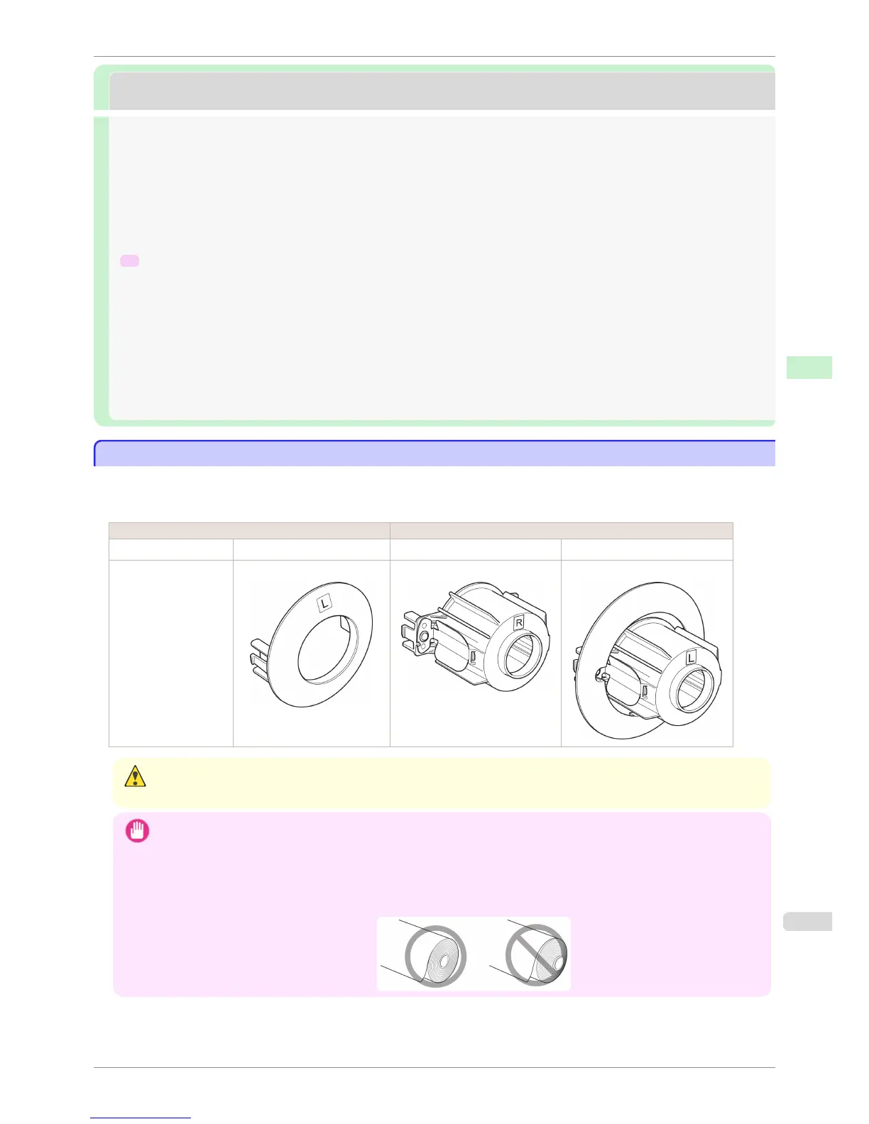 • When handling the roll, be careful not to soil the printing surface. This may affect the printing quality. We recommend