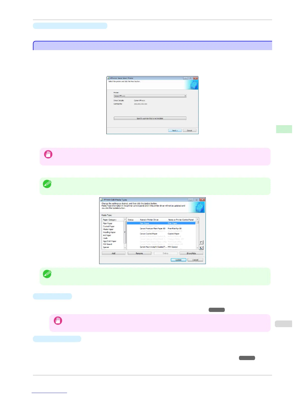• To add media types, download the media information file (.amf file) in advance from the Canon website.