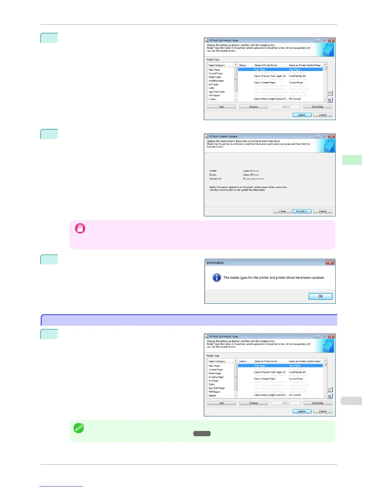• When setting a data to the printer that differs from the data to be updated, the selected media information file is