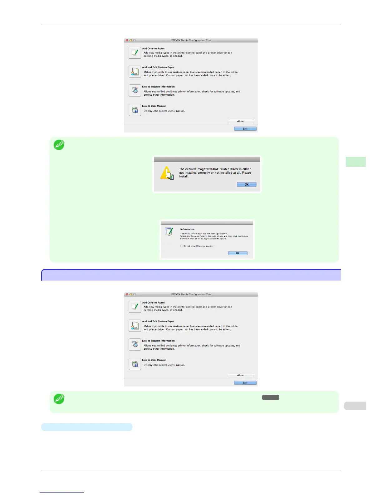 • If a compatible printer driver is not installed, the Media Configuration Tool will not start. If you attempt to start the Media