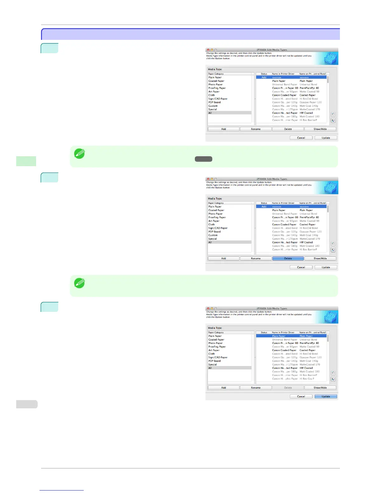 • Only paper for which Status in the Media Type is Add can be deleted.