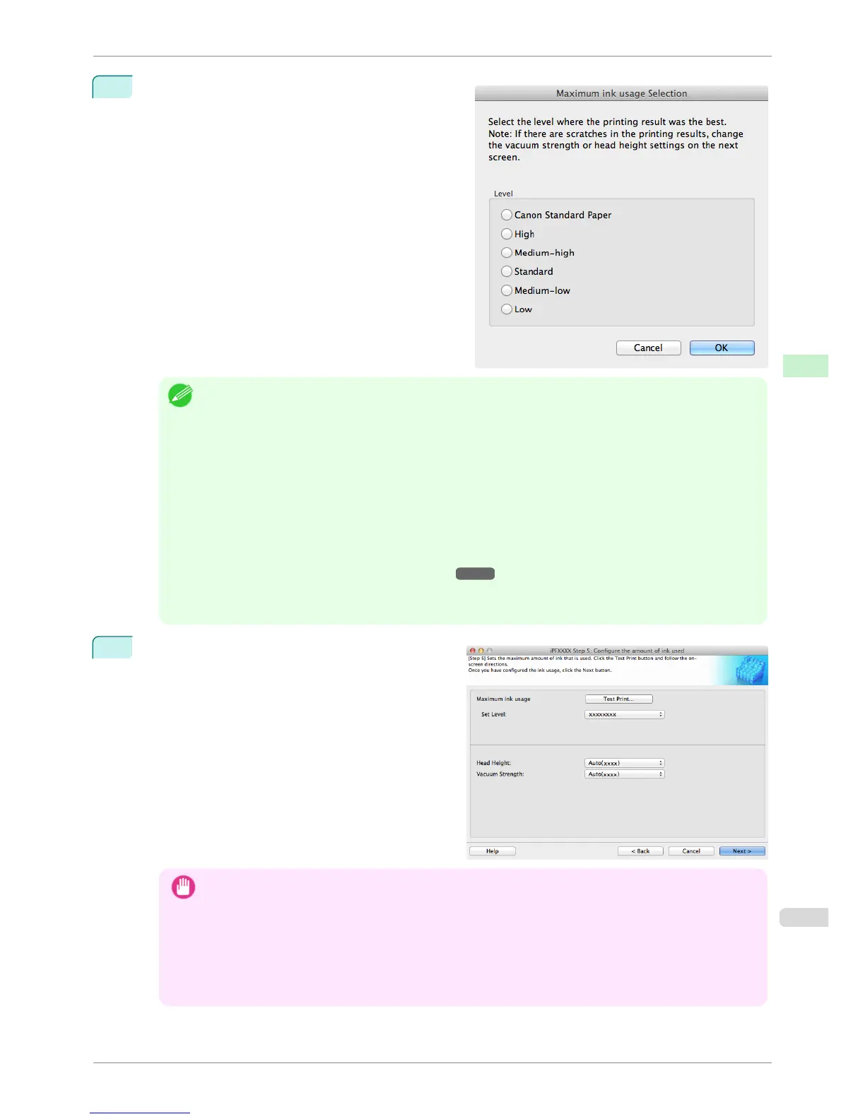 • Select the optimal ink level by referring to the help.