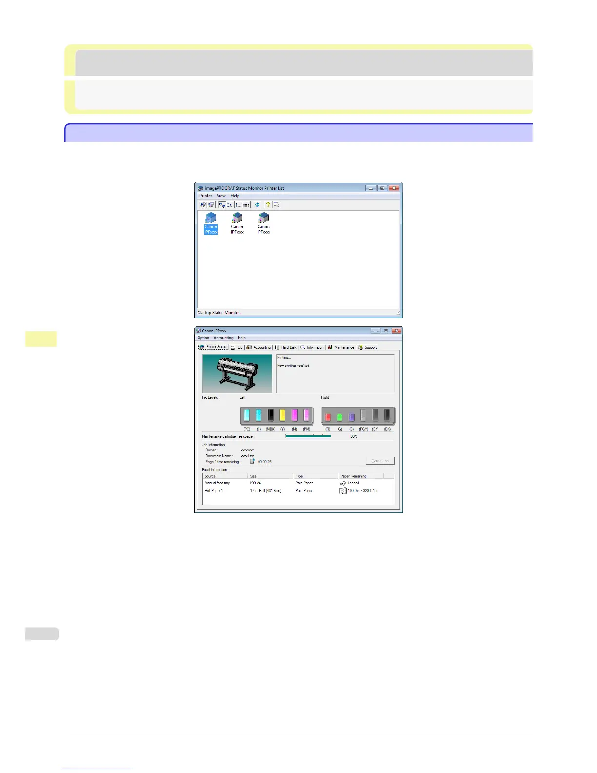 imagePROGRAF Status Monitor is a utility for checking the printer status and managing print jobs.
