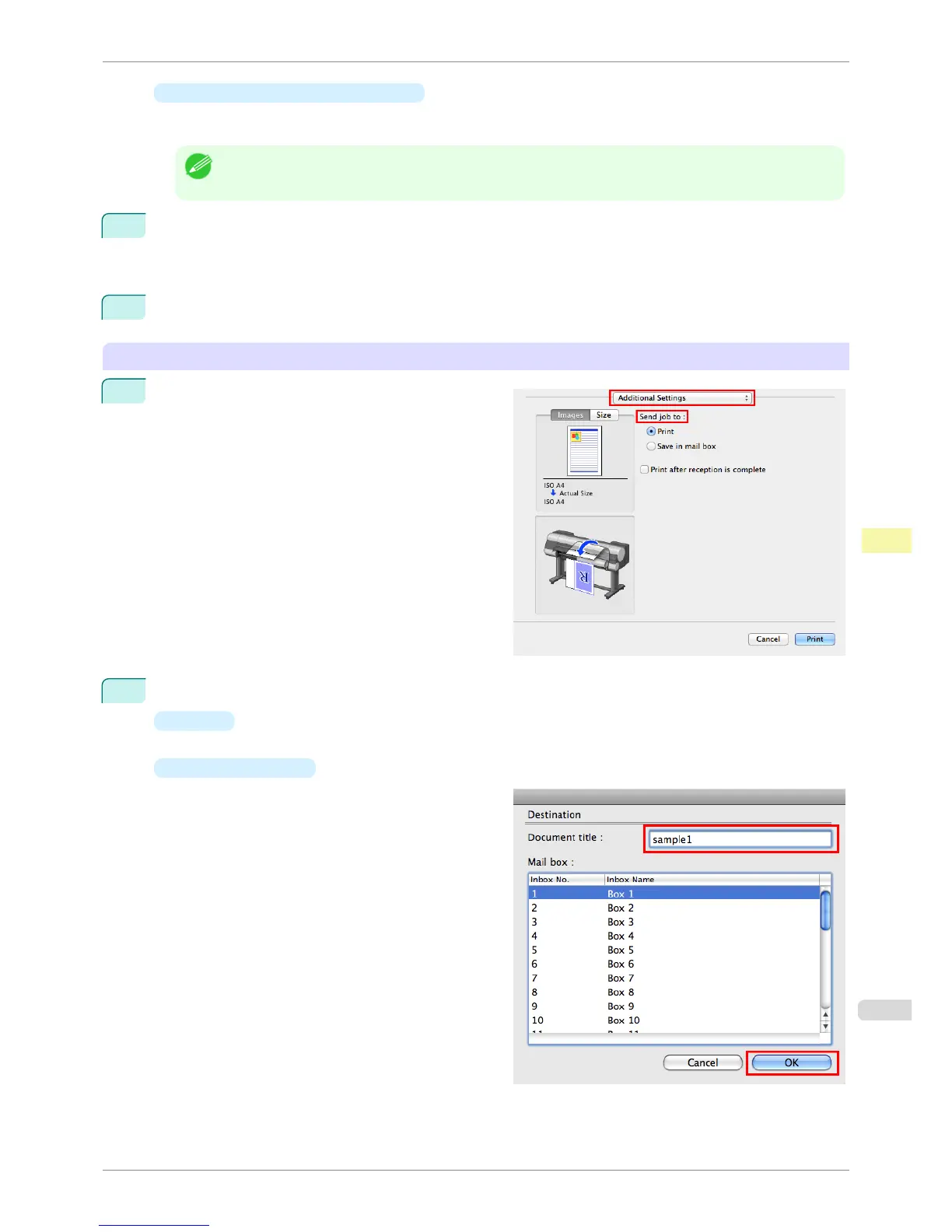 • Click Acquire Mail Box Name to display personal box names in the Mail box list, as acquired from the printer.