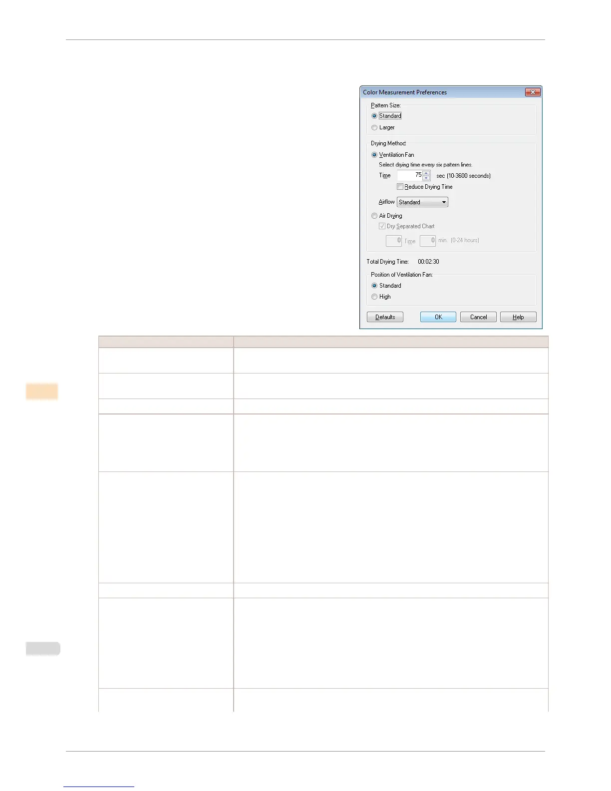 Air Drying Sets the period between the color chart being printed and the color measurement starting.