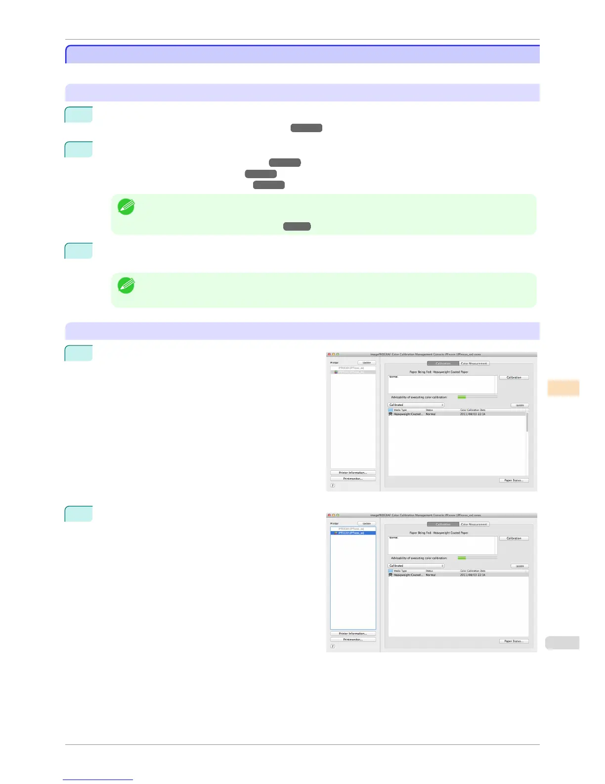 The procedure for executing color calibration is as follows.