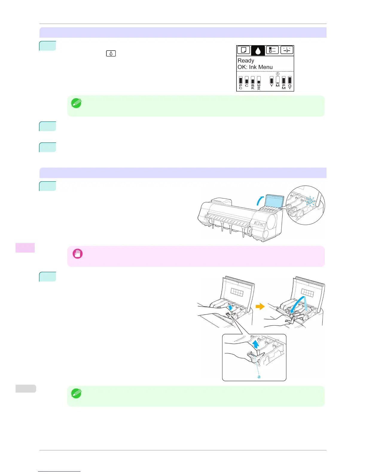 color to replace. Lift the Ink Tank Lock Lever until it