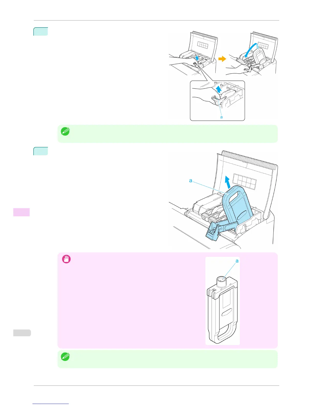 Lift the stopper (a) of the Ink Tank Lock Lever for the