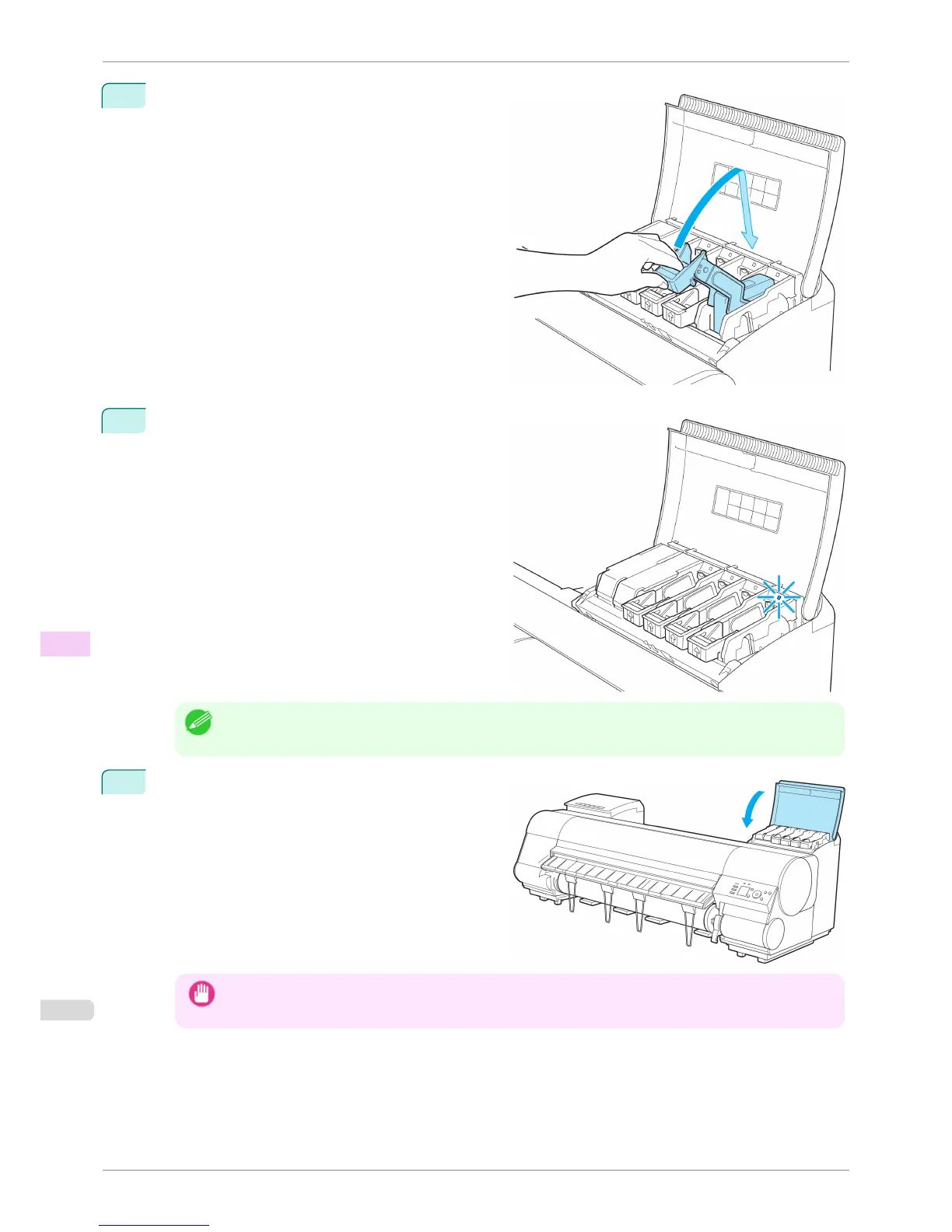 • After Ink Tank replacement, always close the Ink Tank Cover. If the Ink Tank Cover cannot close, some Ink