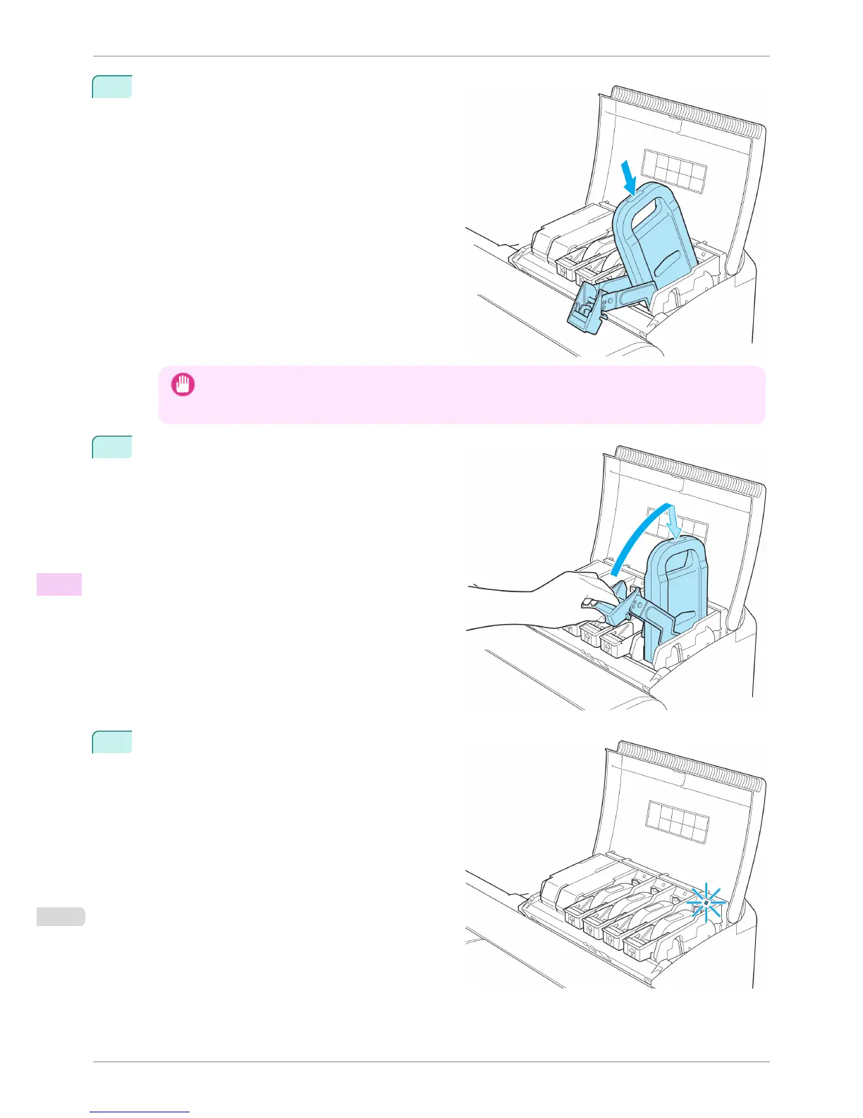 If the Ink Tank does not fit in the holder, do not force it into the holder. Make sure the color of the Ink Tank