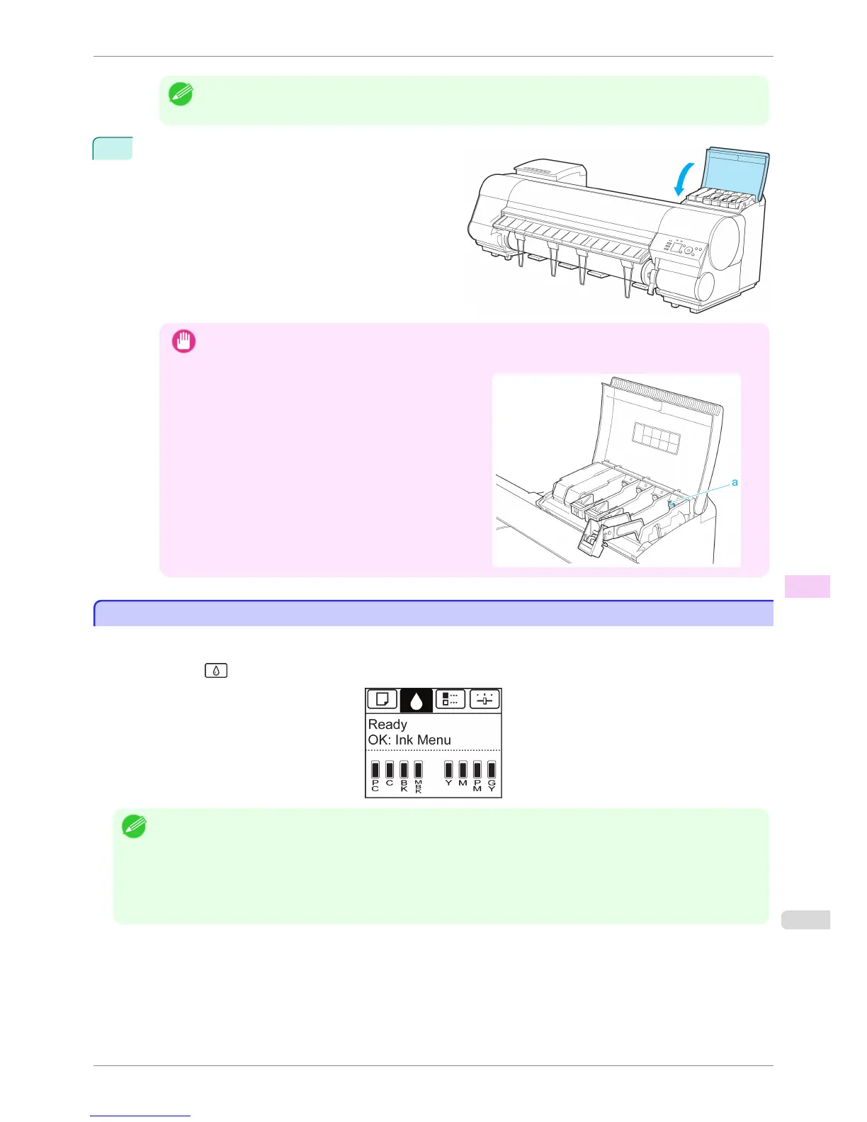 • After Ink Tank replacement, always close the Ink Tank Cover. If the Ink Tank Cover cannot close, some Ink