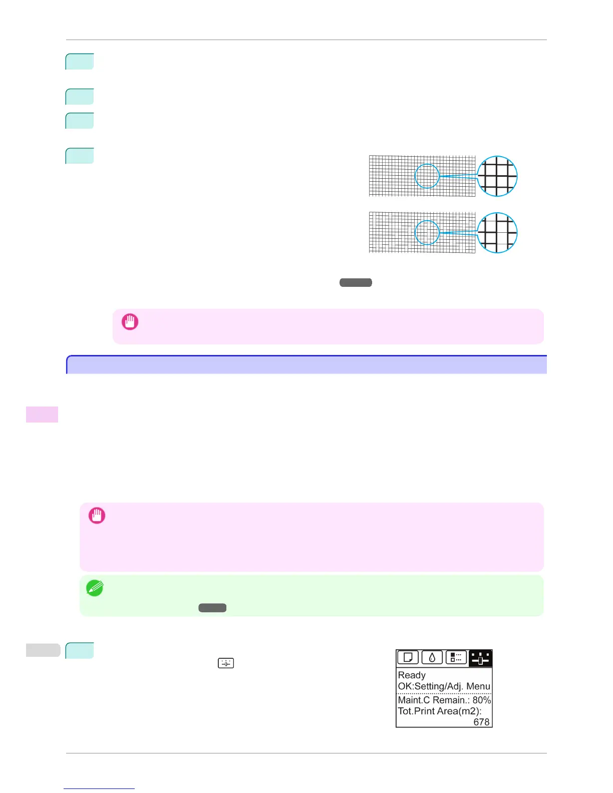 • If you repeat these steps several times but the horizontal lines are still faint or incomplete, contact your Canon