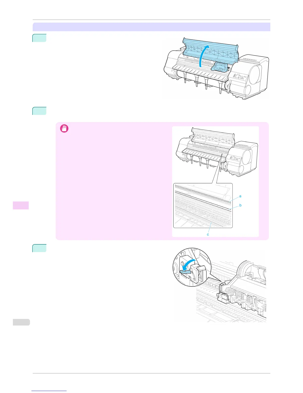 Do not touch the Linear Scale (a), Carriage Shaft (b),