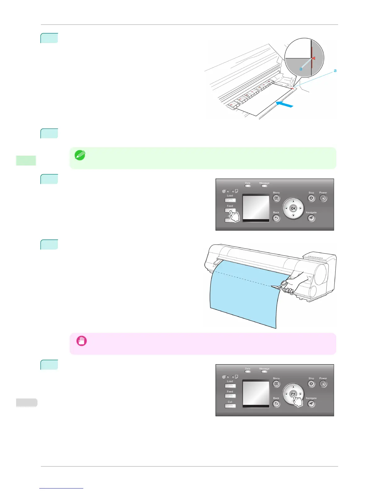 Press ▲ or ▼ to align the paper leading edge with