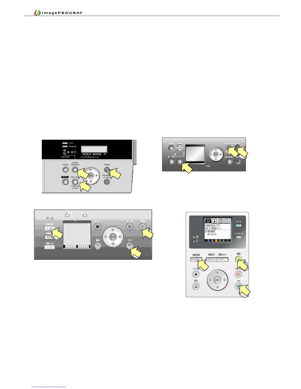 Model without [Navigate] button: Switch on the printer while pressing the [Feeder Selection] button and the [Information]