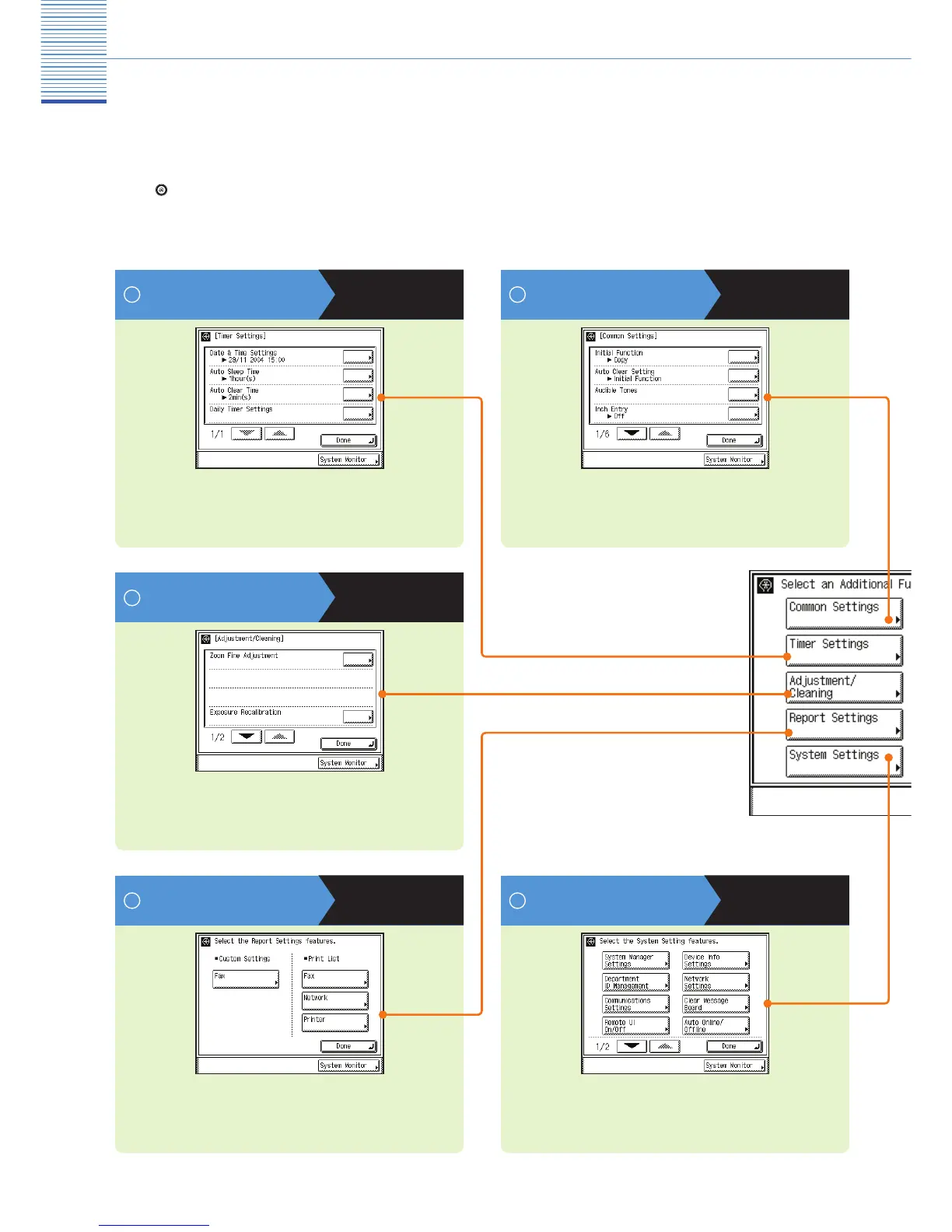 you to customize the various settings of the machine. You can also make the necessary settings for using the Fax