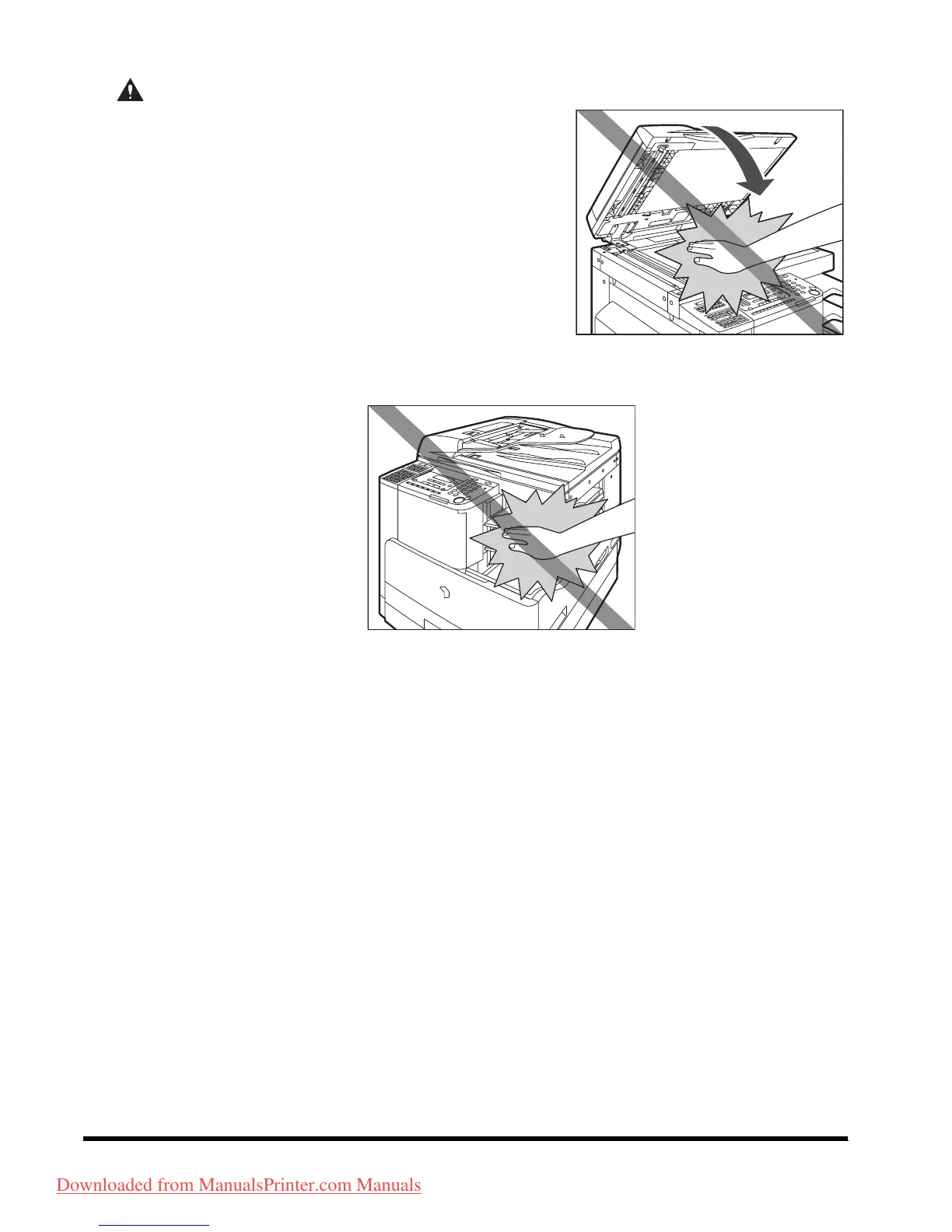 • Do not place your hand in the part of the tray where stapling is performed when a