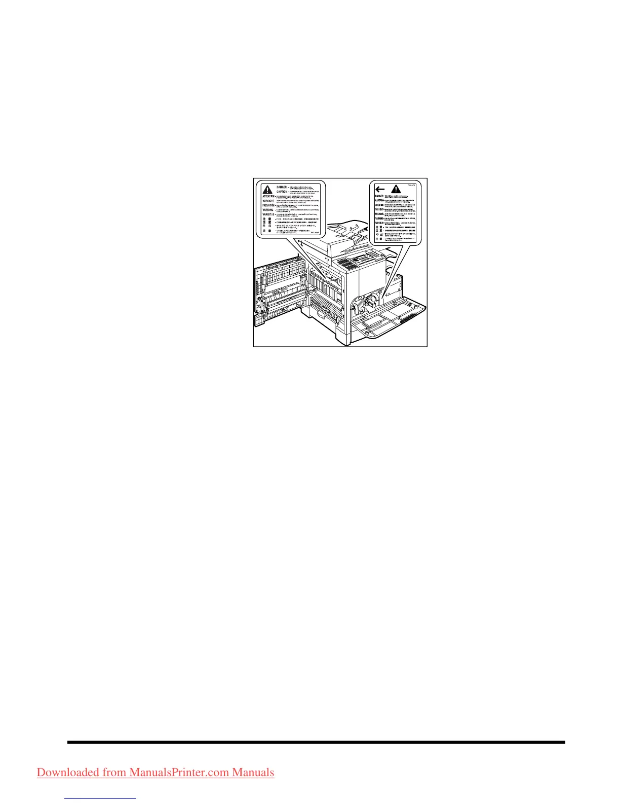 • Do not remove the caution label attached to the laser scanner unit inside the machine