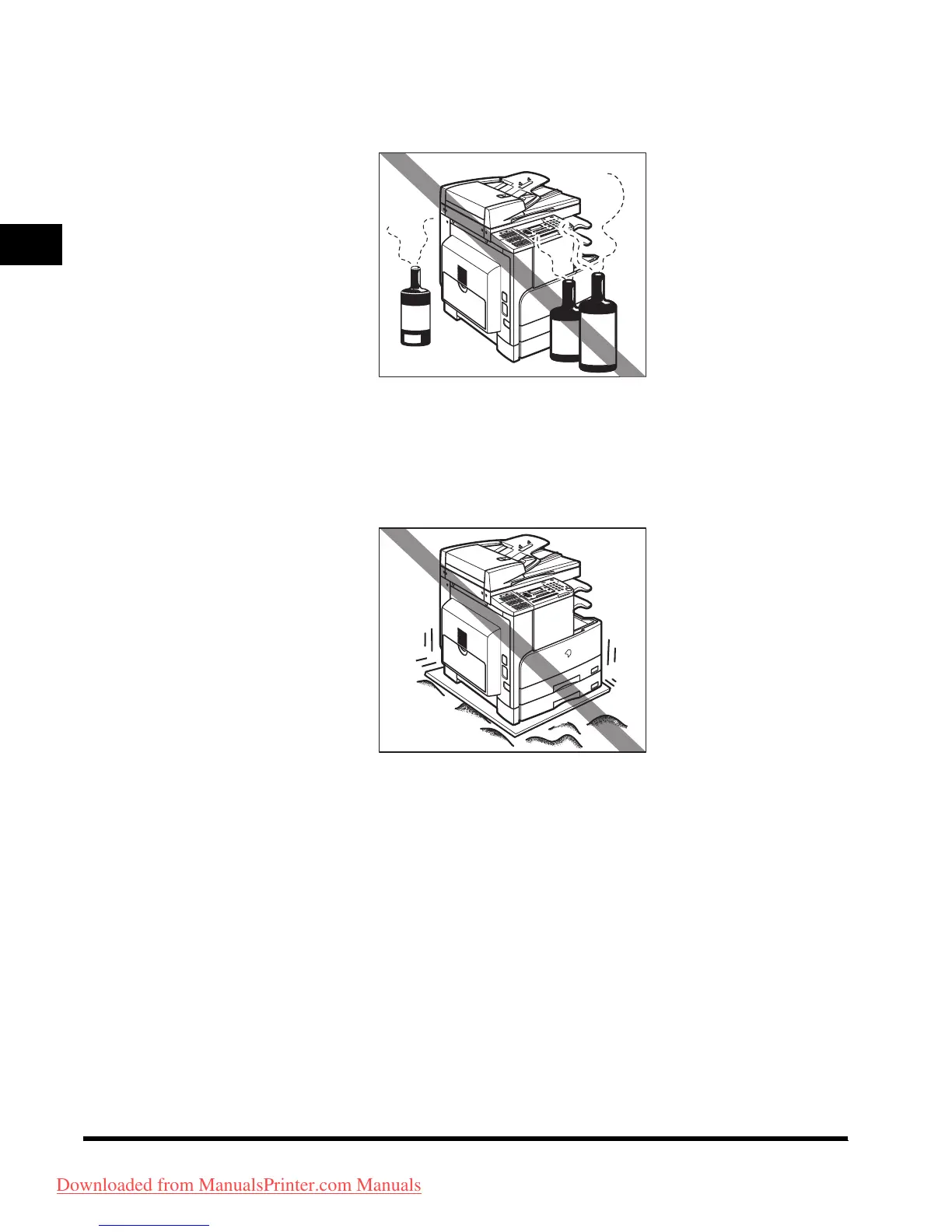 ■ Avoid locations near volatile or flammable materials, such as alcohol or