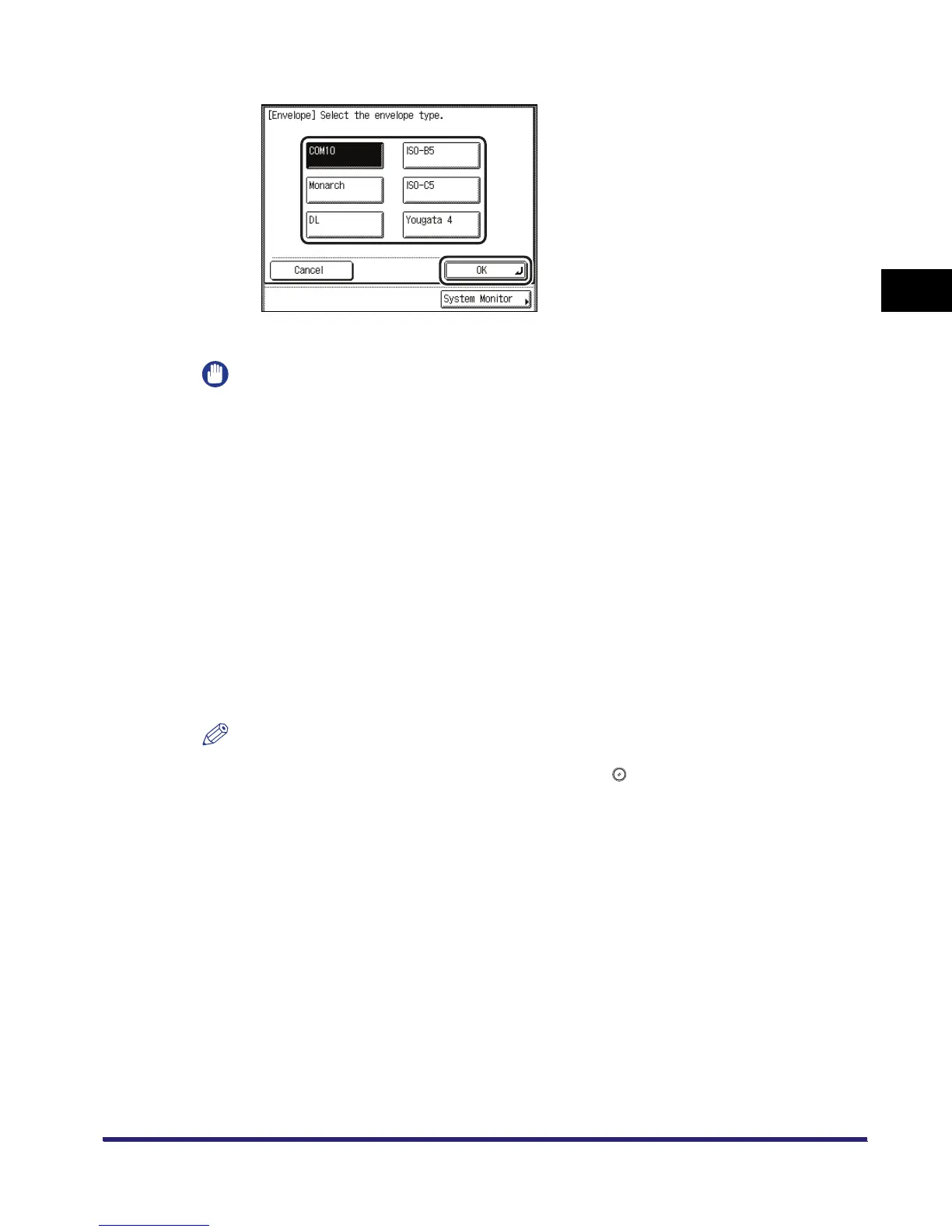 ❑ Select the desired envelope type ➞ press [OK].