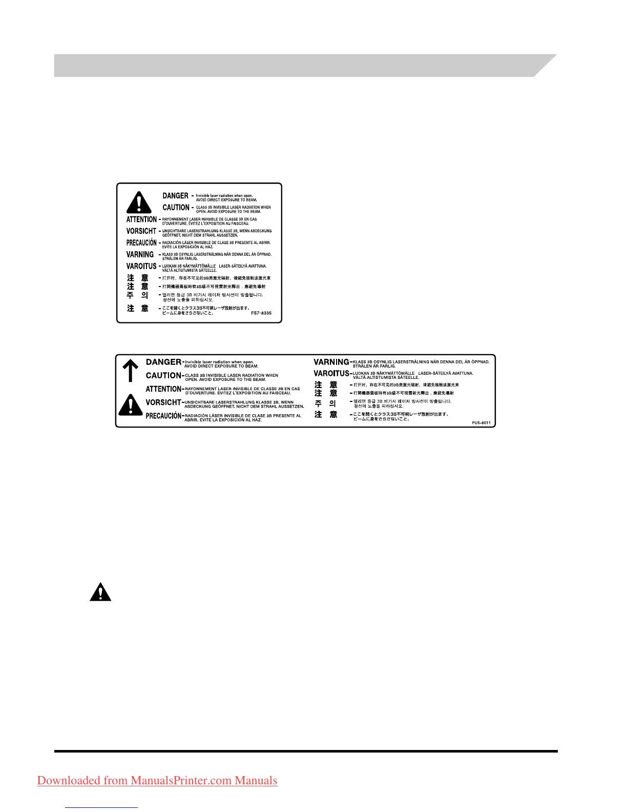The labels shown below are attached to the Paper Drawer's Right Cover and Toner Supply Port