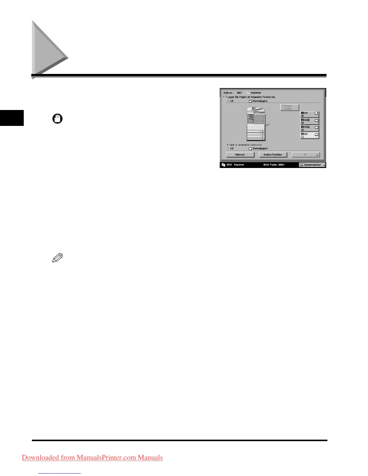 einen anderen Zufuhrort wählen, werden die restlichen Drucke erstellt, nachdem Sie die Taste [OK]