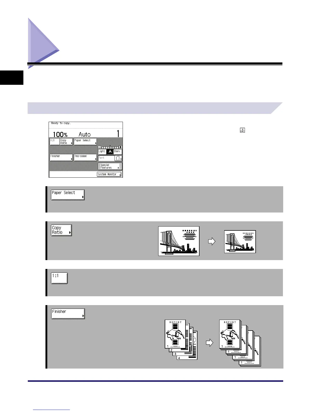 Most operations of this machine are done from the touch panel display. To use the Copy
