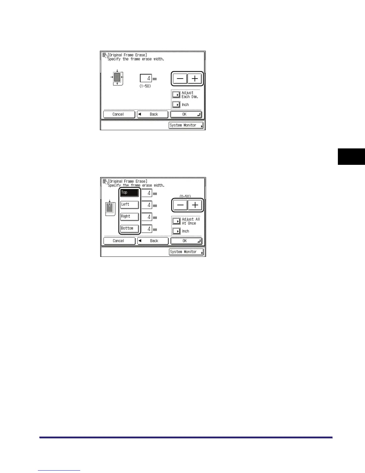 ❑ Select the desired frame erase borders ➞ press [-] or [+] to set their respective frame erase