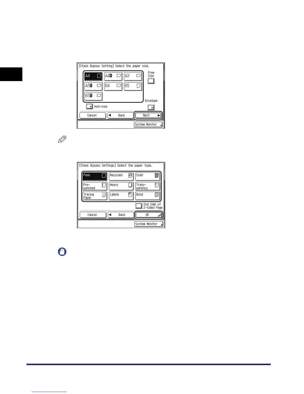 current or reserved job, press [StackBypass Setting] to specify the desired paper size/type.