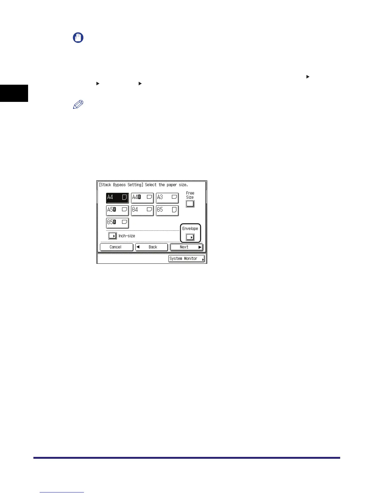 ● To copy on envelope loaded in the stack bypass: