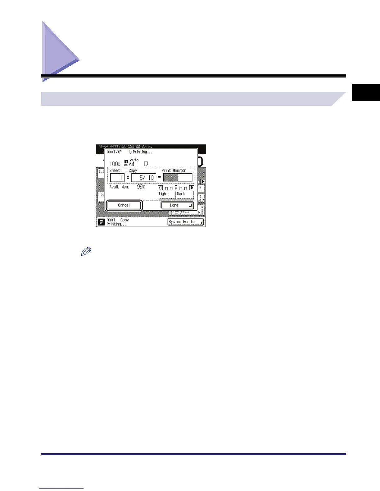 Press [Cancel] on the pop-up screen that appears while the machine is