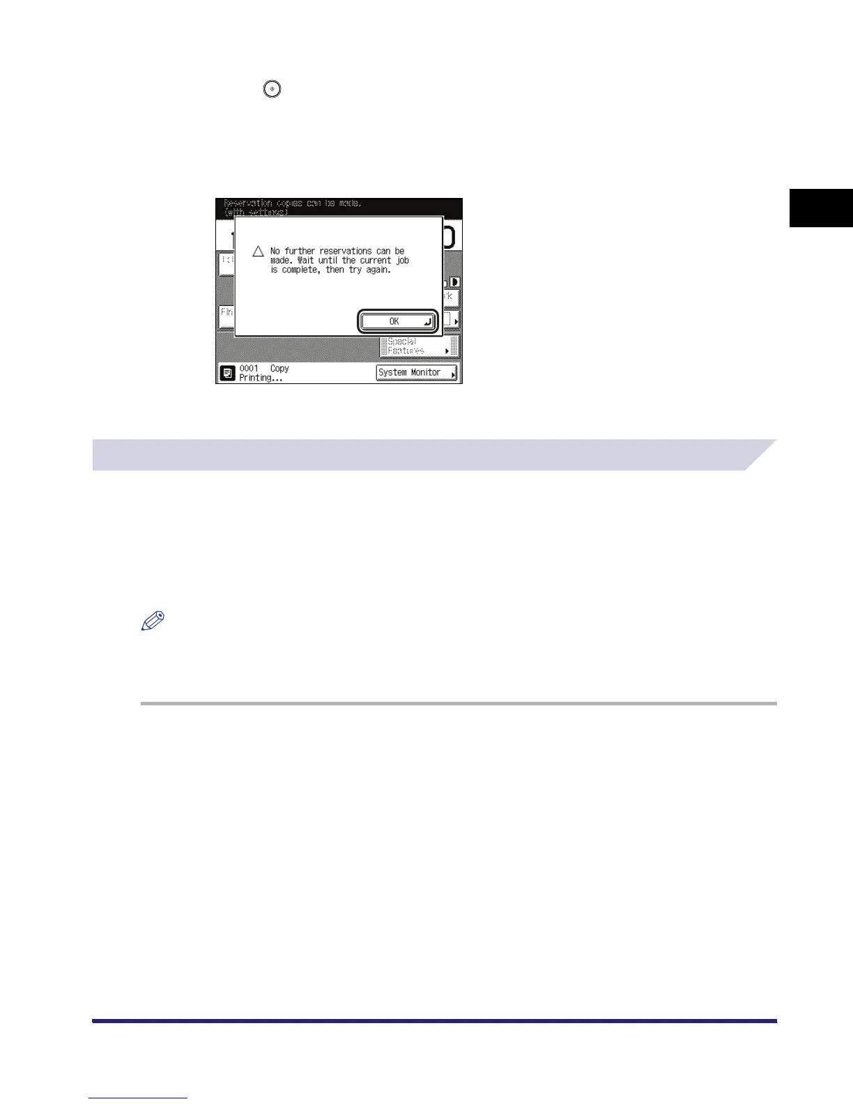If you specify a reserved copy job while the machine is printing, copying of the new job