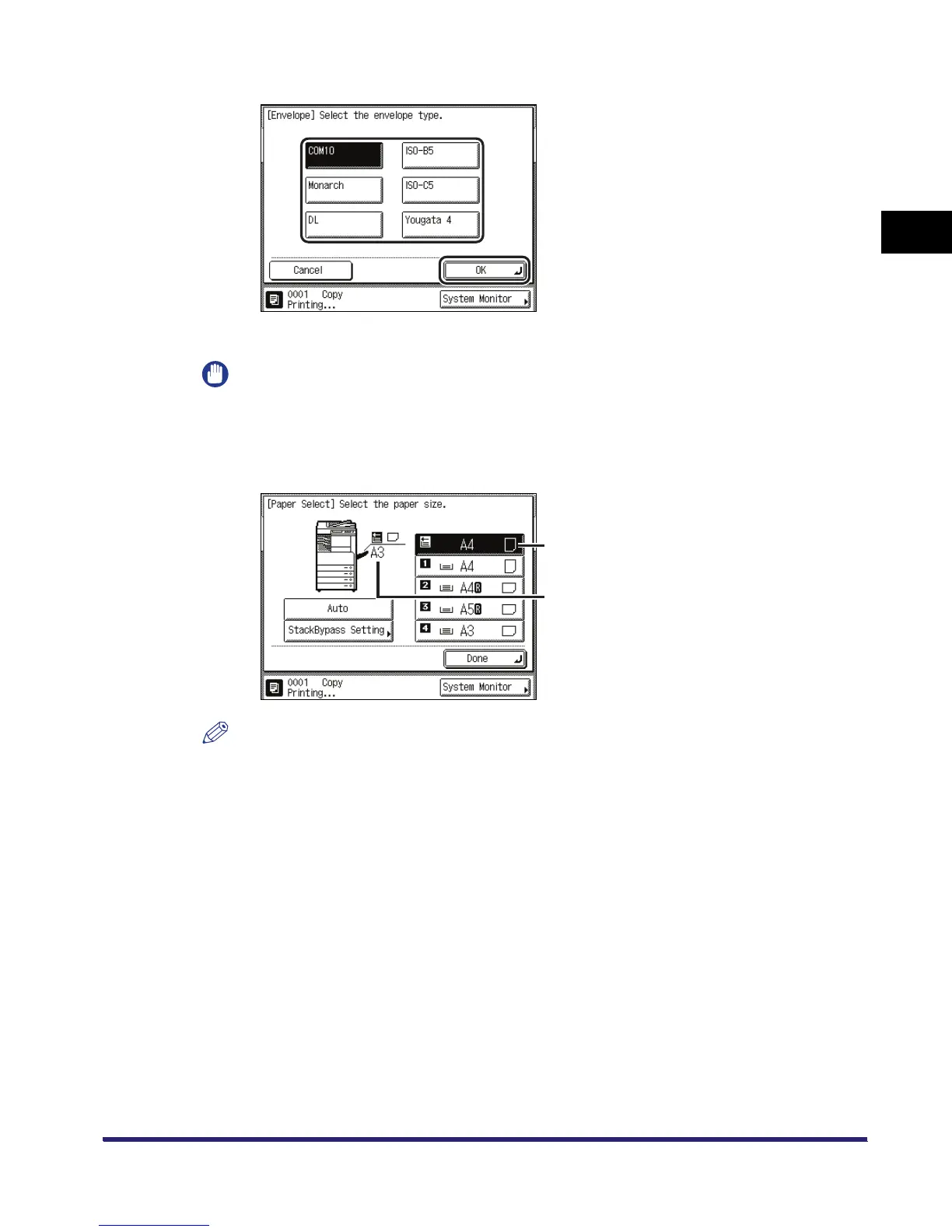 The display returns to the paper size selection screen.